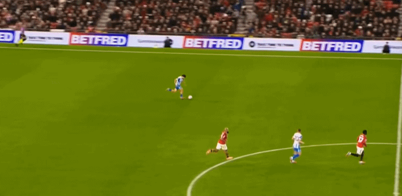 随后就是在这个半扇当中,布莱顿连续出现了传接上的运转问题,这自然会让主场作战的曼联看到进一步压上的机会: